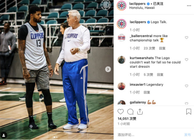 如今的快船,在很多方面都已经有了非常大的改进,除了球队阵容,球队的管理层也是如此。今年夏天,快船引进了保罗-乔治和莱昂纳德的组合,很多人认为这是老爷子杰里-韦斯特的功劳。可以确定的是,跟着老爷子你可以学到很多,今天快船官方就晒出了一张保罗-乔治和杰里-韦斯特在一起聊天的合影,然后写道,“和Logo男聊天。”