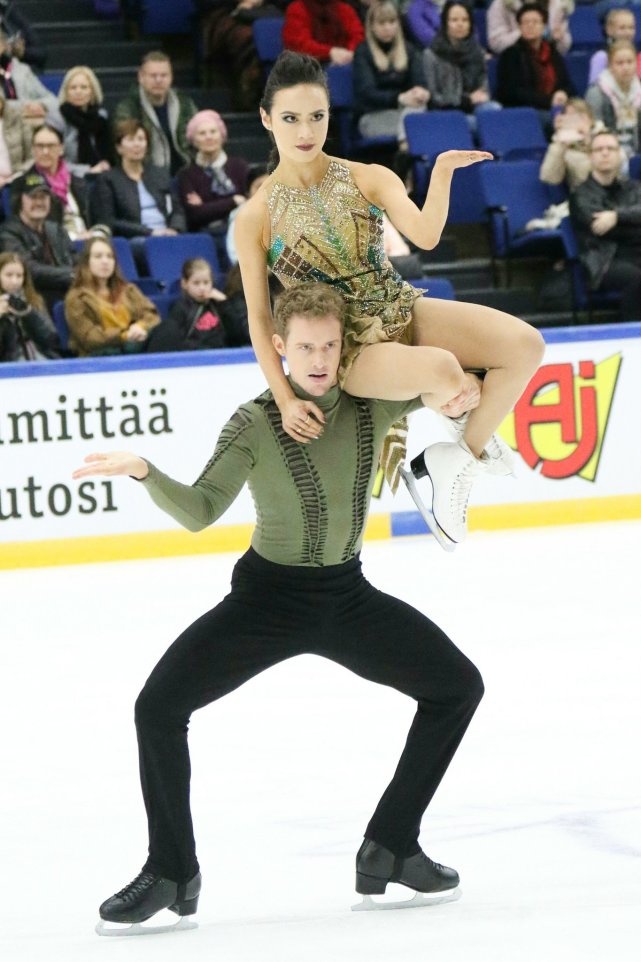 另一对美国组合凯恩/勒杜,则由于女伴后内结环三周跳因为周数不足而摔倒,造成了额外基础分损失。虽然他们有更好的表演与情绪感染力,无奈短节目差距较大,自由滑拿下129.66,总分195.78排名第四。