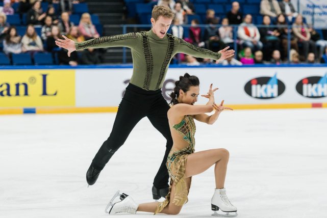 法国组合帕帕达吉斯/西泽龙在冰岛音乐人奥拉佛-阿纳尔德斯的作品旋律中,转体托举兼具节奏感和身体舒展,落冰后以滑出衔接极具难度,短轴编排步伐采用了从裁判面前开始的做法,身体线条感可谓无可挑剔,同步捻转步几乎贯穿大半个冰场,协调一致性可谓典范。