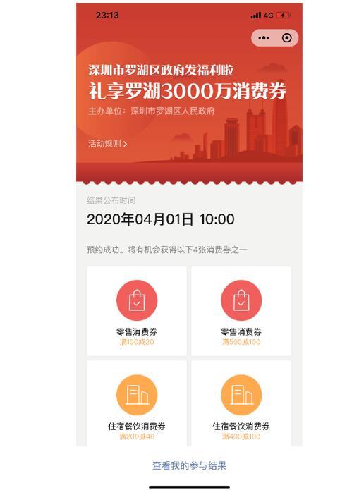 同时,报名消费券活动的用户在罗湖区内参与活动的各零售店、酒店、餐饮店单笔消费满1000元,每月最多还有两次机会随机获赠奖励消费券。