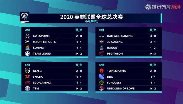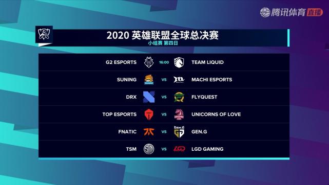 北京时间10月5日,2020年英雄联盟全球总决赛小组赛第3日,TES击败DRX获两连胜,领跑D组,FLY战胜UOL,拿到第一个积分;A组中,SN轻取TL获首胜,G2击败MCX;DWG击败PSG继续领跑B组,JDG击败RGE获两连胜,暂居次席。